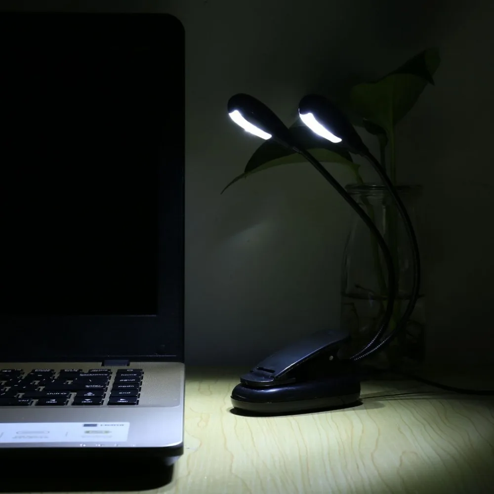 Outdoor Camping Adjustable Goosenecks 2 Dual Flexible Arms 4 LED Clip-on Light Lamp Desk Table Lamp